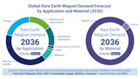 Global rare earth magnet demand is being defined by technology mega-trends in decarbonization, energy, automation, and AI, amidst a backdrop of heightened geopolitical uncertainty. Rare earth magnets are critical materials in high performance motors, speakers, and sensor applications in automotive, industrial, energy, aerospace and defense markets. Despite rare earth supply disruptions in 2025 driving many to seek alternatives, IDTechEx finds that rare earth magnet demand continues to grow and is set to increase up to 70% globally by 2036.
